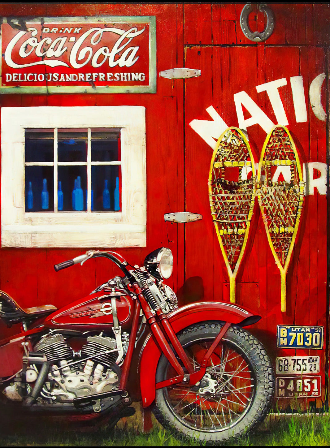 National Garage - 1937 UMG Harley Davidson - Original Painting